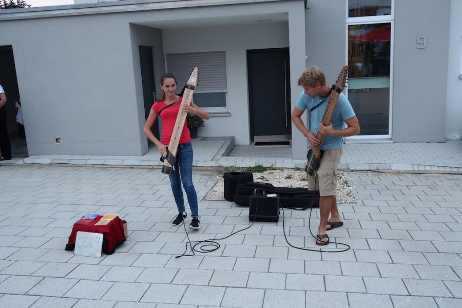 Ein ganz besonderes Schmankerl gab es noch um 21 Uhr, als Steffi und Marc auf ihren Chapman Sticks, die man hier nicht kennt, bekannte Popsongs spielten. Die Instrumente mit einem fremdartigen, aber sehr schönen Klang fanden die Bewunderung der Zuhörer und wir danken den beiden für ihre kurzfristige und spontane Zusage. Sie haben dem Fest eine besondere Note gegeben.