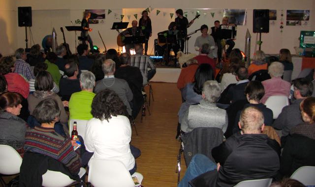 Das begeisterte Publikum unterstütze die Band mit dem „Löffel- Schlagzeug“ und durch rhythmisches Klatschen und veranlasste sie durch den lang anhaltenden Beifall zu zahlreichen Zugaben.