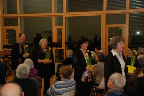 Von Barock bis Gospel, auf Deutsch und Englisch, mit Klavierbegleitung und nach guter a cappella-Art nur mit der Stimme, wurde den etwa 70 Zuhörern ein besinnlicher, aber auch beschwingter und sehr kurzweiliger musikalischer Wochenendausklang geboten.